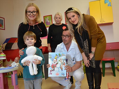 „Zdeněk Piškula dětem rozdal panenky a sladkosti, podepsal DVD Tři bratři a zajímal se o jejich koníčky a záliby,“ uvedla vrchní sestra dětského oddělení Bc. Bohumila Lokajová s tím, že panenky mohou mít děti u sebe nejen během celého pobytu v nemocnici, ale zůstávají jim i při odchodu domů.