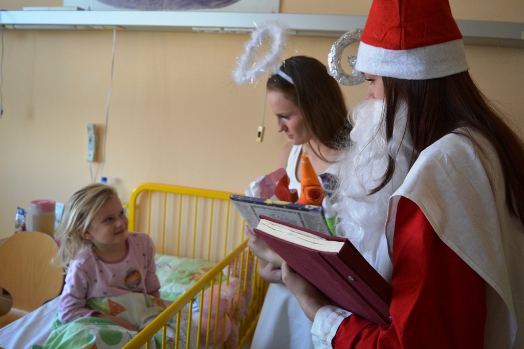 Dne 23.prosince - Den před štědrým dnem jsme navštívili děti na dětském oddělení nemocnice ve Frýdku-Místku. Obdarovali jsme děti, které musejí ze zdravotních důvodu zůstat na štědrý den v nemocnici. Rozdali jsme dětem kolekce, látkové hračky, sladkosti a také jim poslala své CD Leona Machálková. Děti měly s dárku velkou radost a rodiče byli mile překvapeni.
