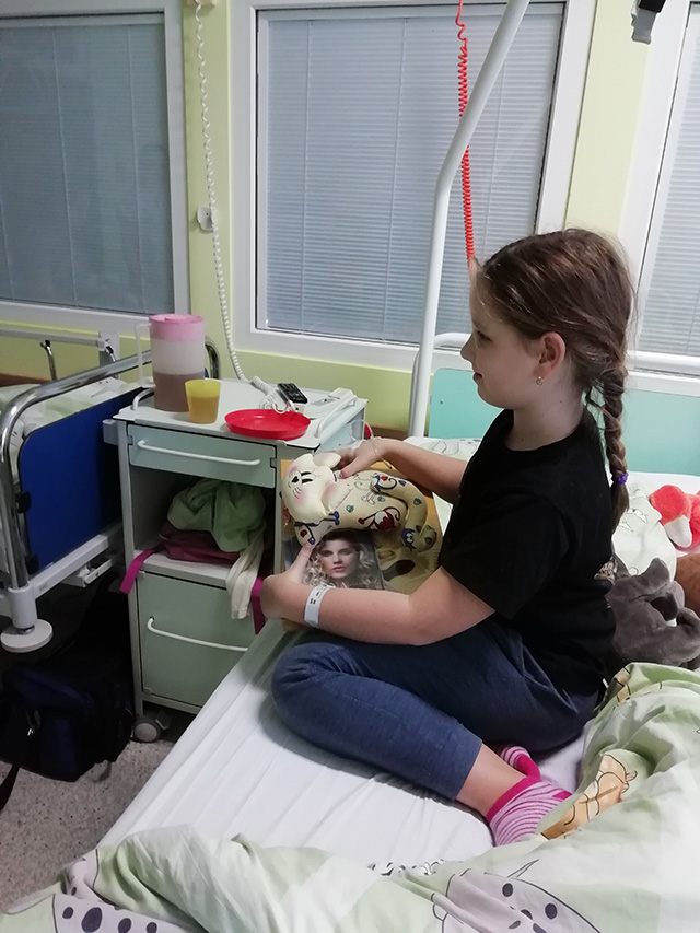 Eva Pastušková přinesla se svým týmem také další zásobu panenek. Ty následně putují ke každému malému pacientovi, který si hračku může dle vlastní fantazie vybarvit a panenka se pak stává parťákem při pobytu v nemocnici.