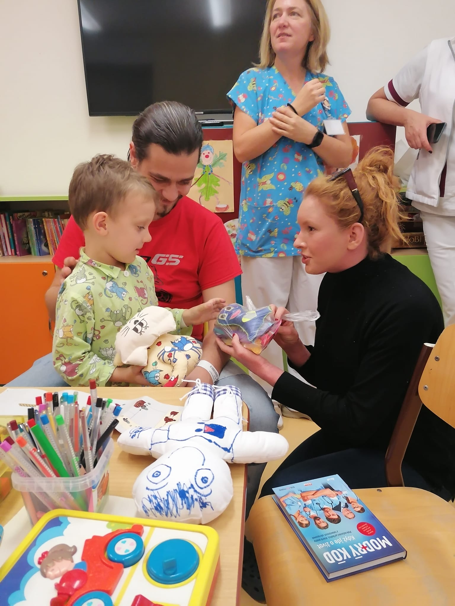 11.8.2022 Opět krásné čtvrteční odpoledne v nemocnici Ostrava Vitkovice(Agel) u pana primáře MUDr. Jana Boženskeho (garanta naší panenky). Tentokrát s charismatickým, milým hercem Sašou Rašilovem jsme předali dětskému oddělení 100ks panenek. Děti s panem Sašou Rašilovem malovaly panenky a musím říct, že byly opravdu krásné. Samozřejmě od pana Rašilova dostaly za odměnu dárečky i vlastnosručně podespanou knihu "Modrý kód". Děkujeme také paní Lindě Filuszove z Innogi za podporu projektů panenka dětem.