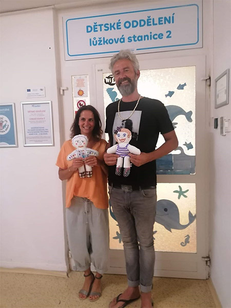 Jsme rádi, že budeme zase dávat panenky a hračky na dětská oddělení nemocnic. Během pandemie coronaviru šila ženská věznice v Opavě roušky z bílé antialergické látky pro sestřičky, lékaře a také pro malé pacienty z barevných látek. Věznice v Opavě ušila za podpory vedení Opavské věznice a p. Králové přes tisíc bílých roušek a dvěstě dětských barevných. Chtěla bych poděkovat firmě Inoggy za podporu k šití bílých antialergických roušek z látky určené na panenky a firmě Kampet Kamile a Petrovi Zlámalovým za barevné látky na dětské roušky.