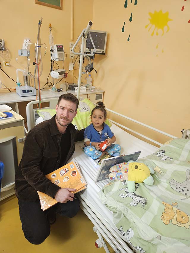 9.4.2024 Úterní dopoledne na dětském oddělení Frýdecko-Místecké nemocnice naše sdružení panenka dětem a herce Lukáše Vaculíka.