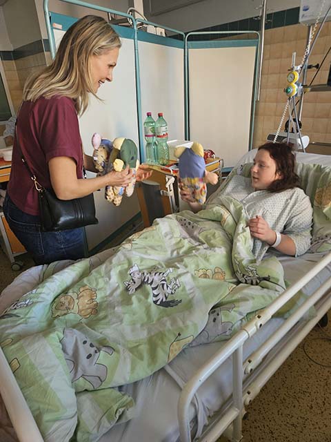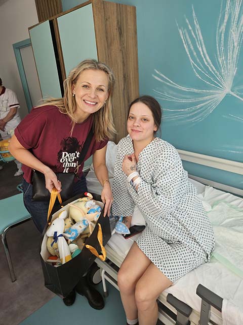 29.1.2024 Pondělní poledne zpříjemnila Michaela Badinková nejen na dětském oddělení, ale i v novém nádherném porodním oddělení v Městské nemocnici Havířov. Na dětském oddělení jsme předávali panenky, polštářky "Hajánky", sladkosti a knížky o ohrožených zvířátkách. Nechybělo malování panenek společně s hospitalizovanými dětmi, které mohly trávit čas ve společenské místnosti. Míša bezprostředně a s mateřským citem bavila malé pacienty.