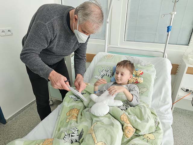 21.3.2024 Čtvrteční dopoledne na dětském oddělení Vítkovické nemocnice přivítal primář MUDr. Jan Boženský naše sdružení panenka dětem a herce a zpěváka Igora Orozoviče.