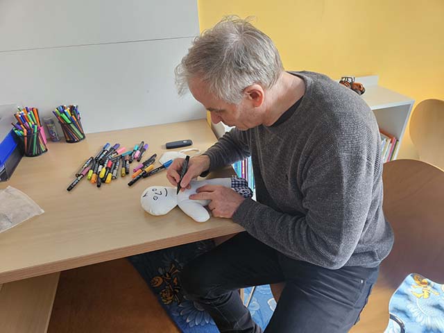 21.3.2024 Igor Orozovič kreslil panenky s dětmi na dětském oddělení ve Vítkovické nemocnici...