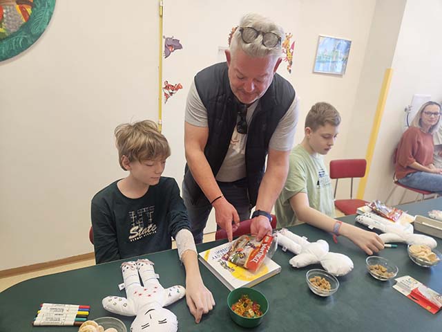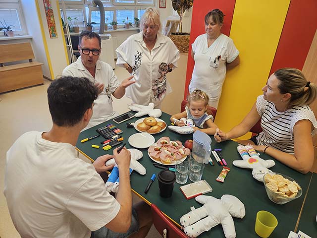 9.4.2024 Lukáš Vaculík kreslil panenky s dětmi na dětském oddělení ve Frýdecko-Místecké nemocnici...
